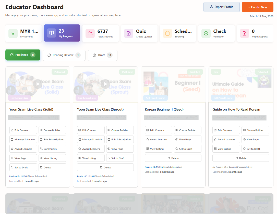 Experience the educator dashboard firsthand. See how easy it is to manage your teaching programs, track earnings, and engage with learners.