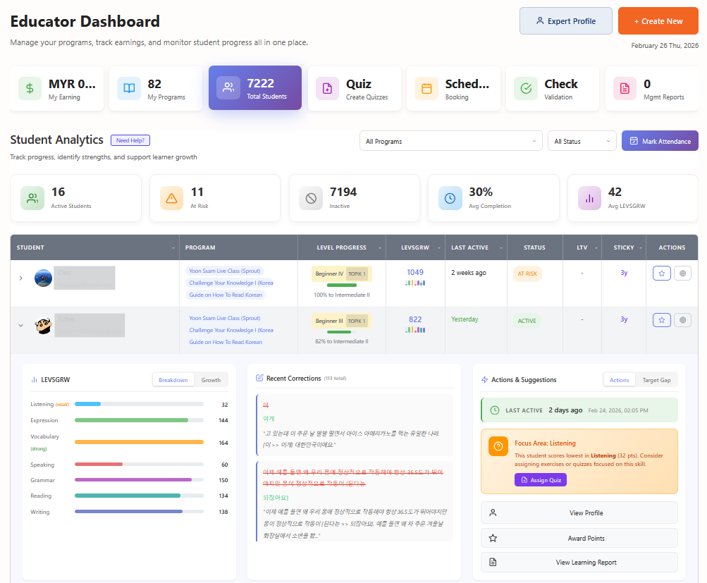 Deliver corporate training programs, employee language courses, and professional development workshops. Tap into the growing demand for workplace Korean education.